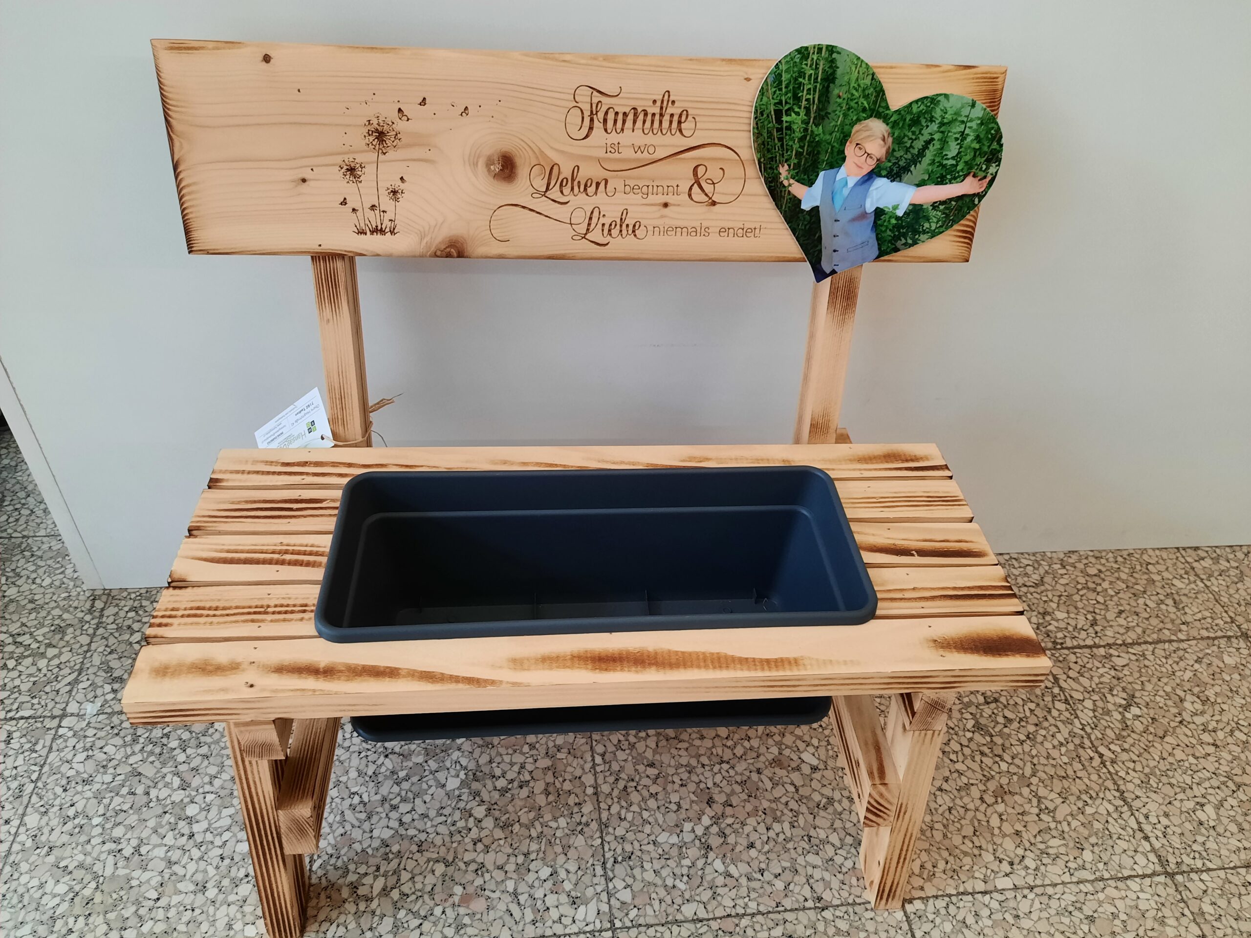 Dann ist unser Blumenbankerl inkl. einem Herz mit Wunschfoto genau das richtige.