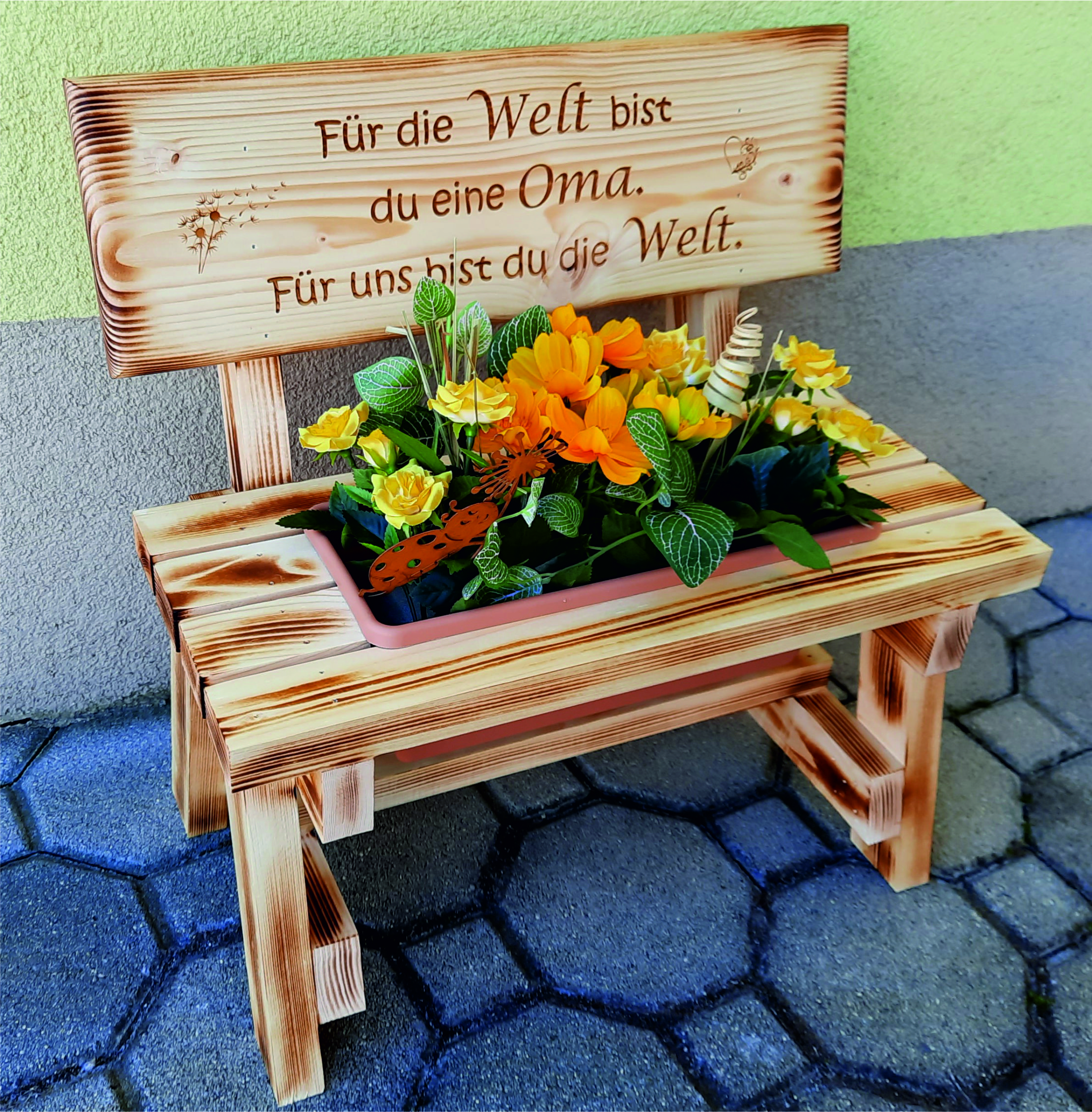 Unser dekoratives Blumenbankerl wird aus Echtholz in Handarbeit gefertigt und mit einem integrierten Blumenkisterl versehen. Dank der sichtbaren Holzmaserung ist es ein echter Blickfang.
