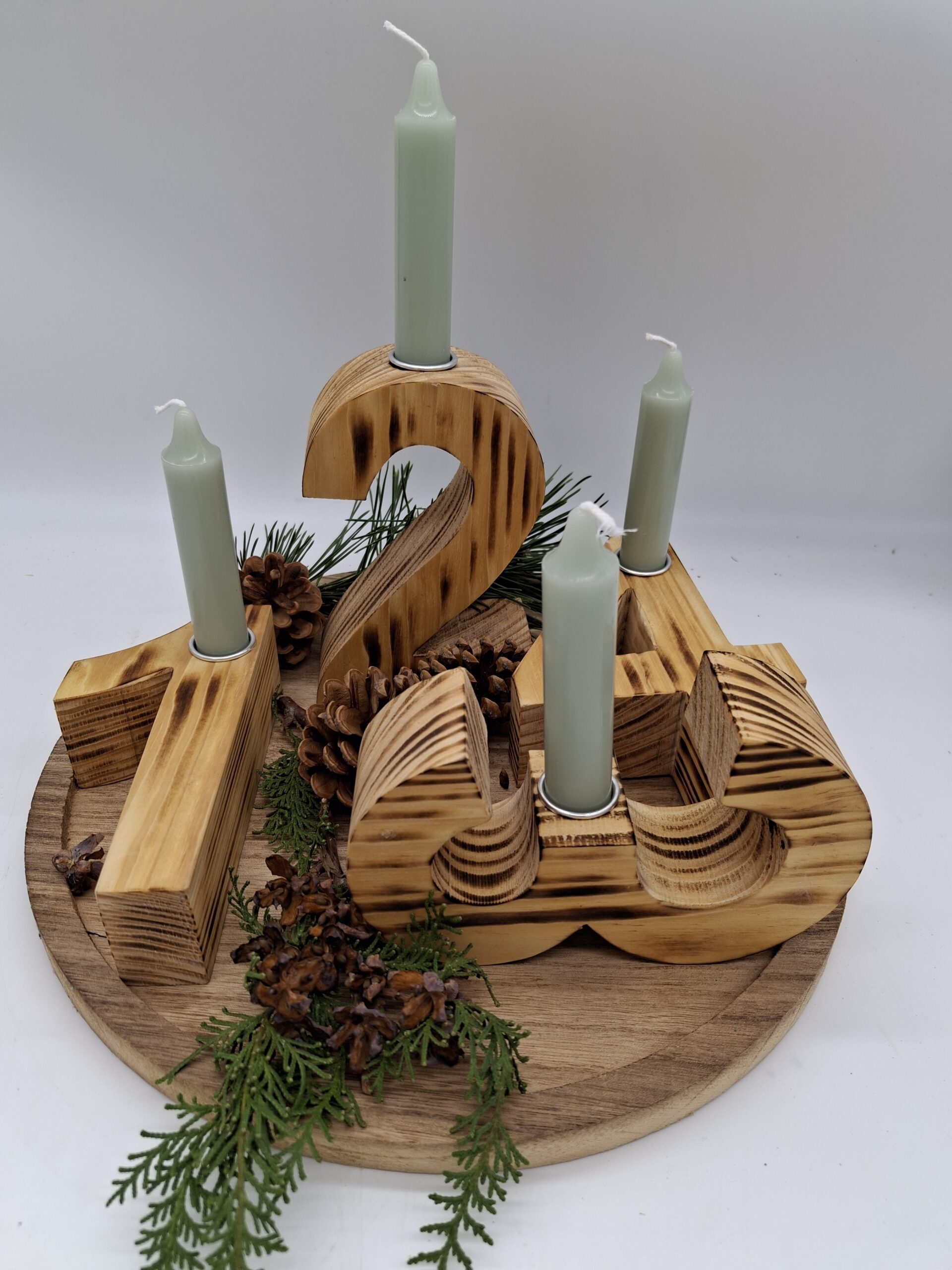 Adventzahlen 1-4 aus massiven Holz geflammt
