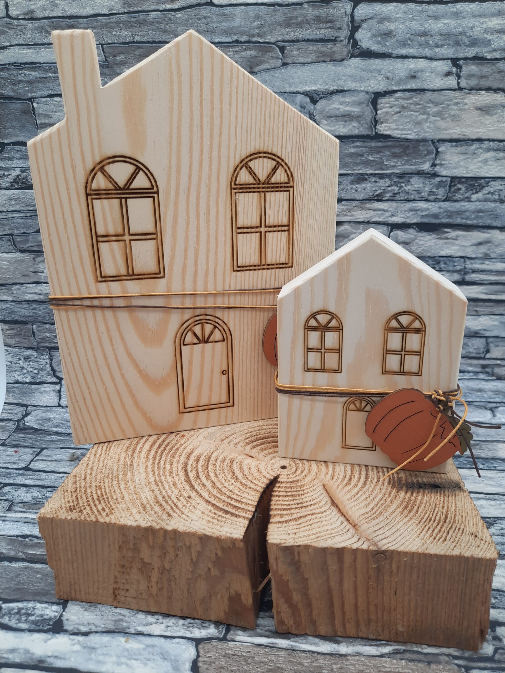 Eine schöne Kombination dieser beiden Holzhäuser, graviert mit Fenster und Türe.