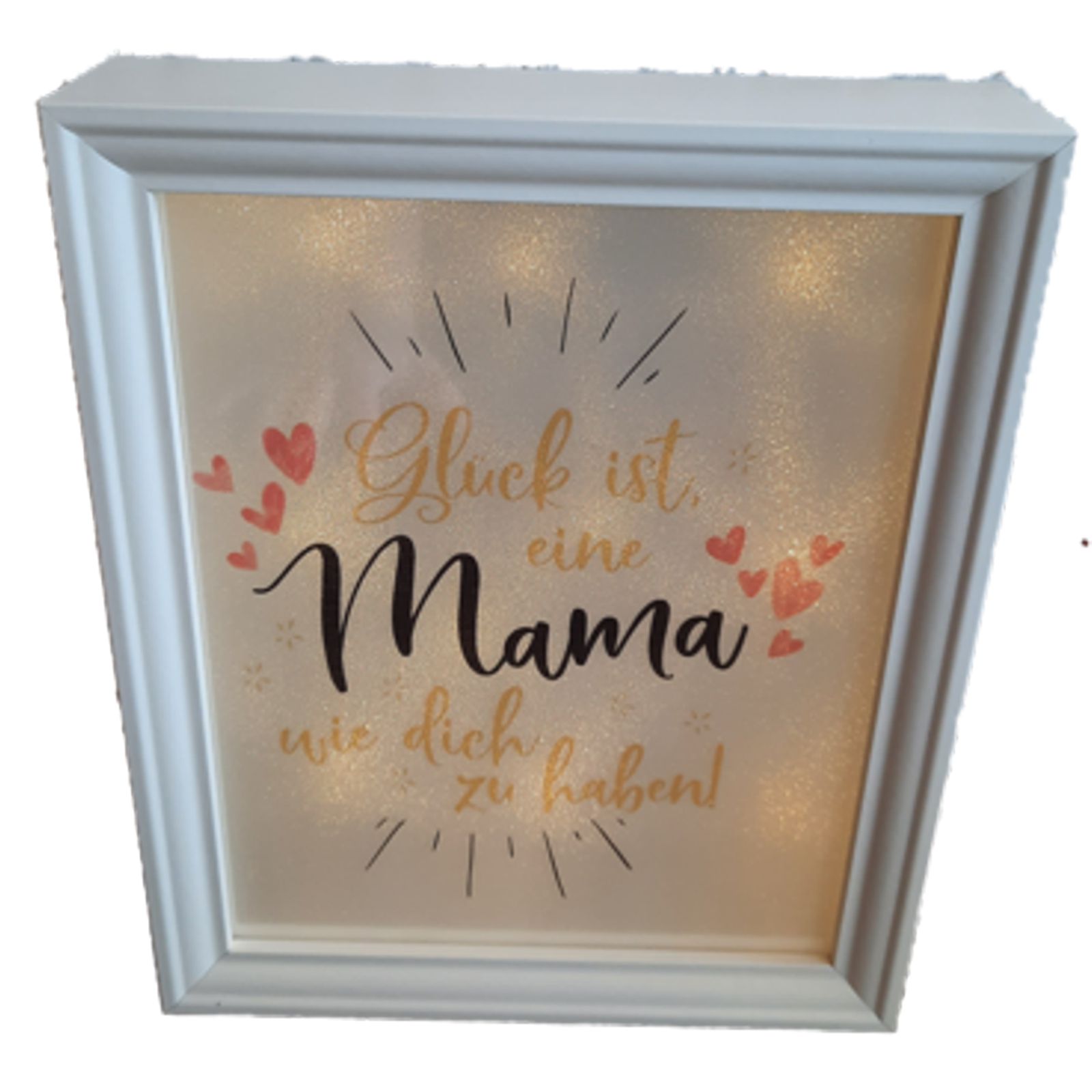 Leuchtrahmen rechteckig 25×20 cm mit den Text : Glück ist eine Mama wie dich zu haben!