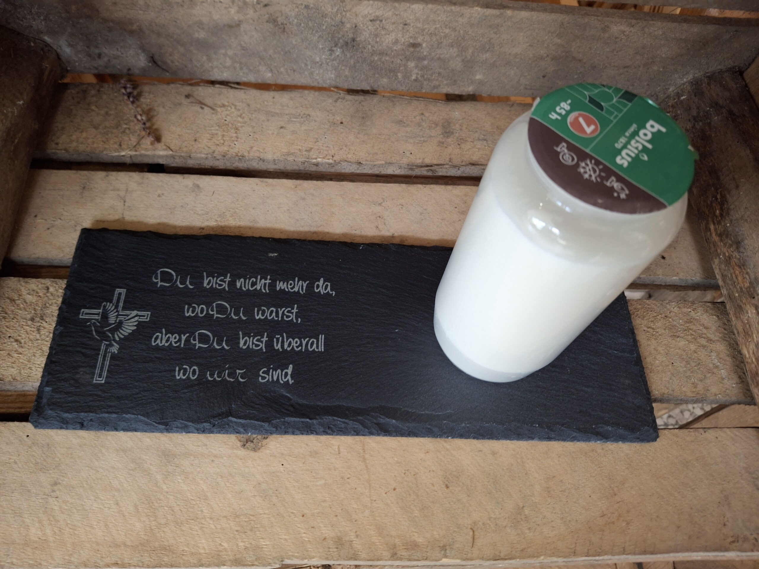 Liebevoll gestaltete Schiefer Grabuntersetzer für Kerze oder/und kleine Gestecke.